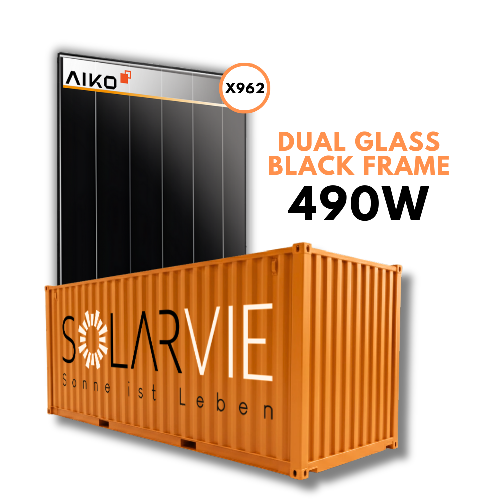 - Leistung: 490 Watt starkes Glas-Glas Modul mit bis zu 24,5 % Wirkungsgrad