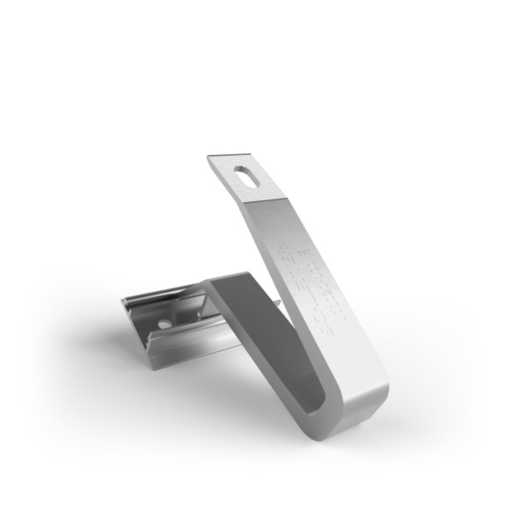 Der EcoA 45 Dachhaken aus Aluminium deckt einen Großteil der Anwendungen auf Ziegeldächern ab und ist für höhere Schneelasten und Windlasten geeignet. Er ermöglicht eine schnelle und flexible Montage durch Einhaken, und wird mit nur einer Tellerkopfschraube mit Torx befestigt. Es wird die Anschraubplatte am Sparren montiert und der Bügel wird anschließend eingeklickt. Zugleich lässt er sich mit allen gängigen Schletter-Profilen kombinieren. Kompatibel zum klassischen Schletter Solar Montagesystem und zur Serie Schletter ProLine